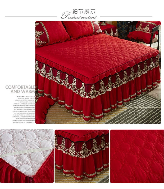 Phong cách châu âu màu rắn giường bông váy dày giường bìa mảnh duy nhất váy ren váy 1.8 m bảo vệ bìa trượt