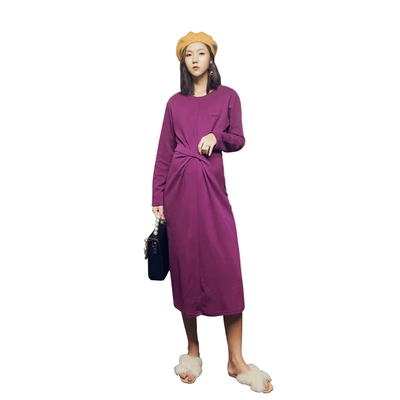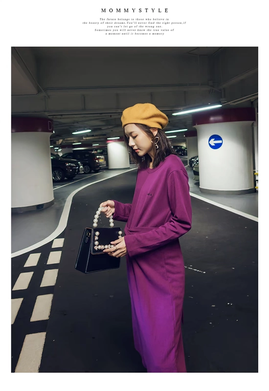 Phụ nữ mang thai mùa xuân mẫu thời trang 2019 mới quai mảnh tay dài váy tím dài 3-9 tháng