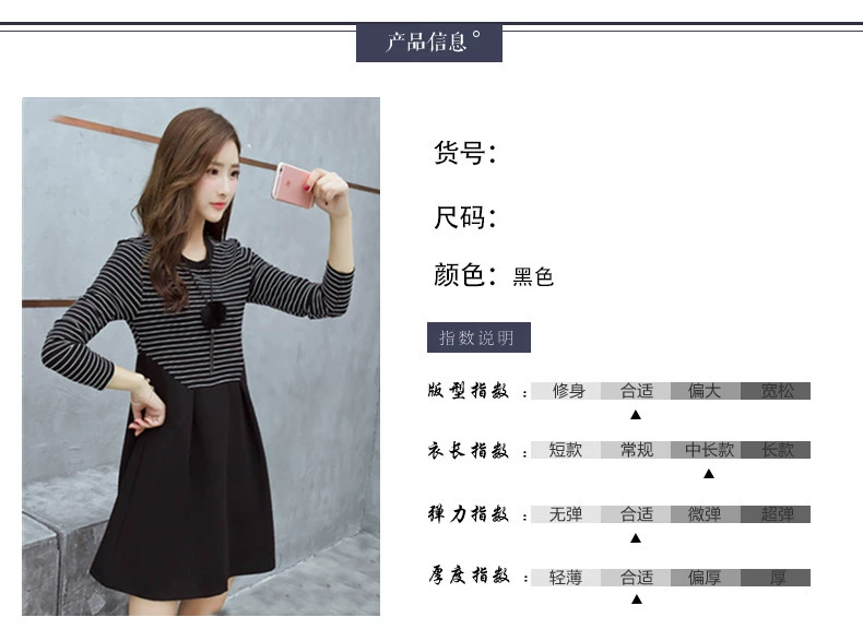 Bà bầu mặc váy mùa thu dài tay phiên bản hàn quốc sọc dài mang thai bà bầu cỡ lớn váy mùa thu