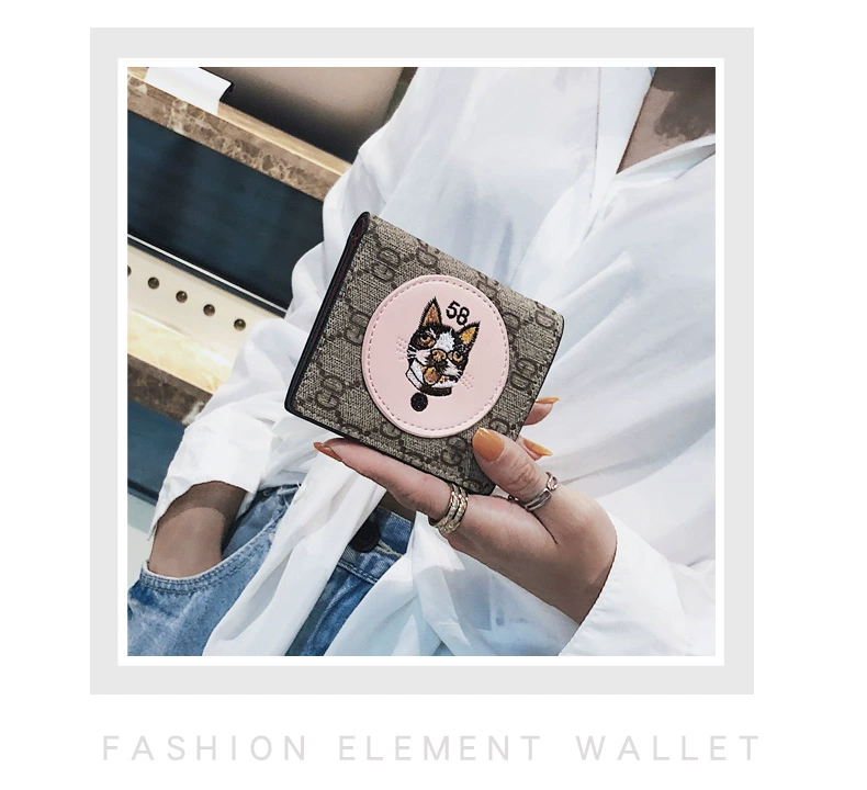 KISS ME Ví in châu Âu và Mỹ nữ 2019 chó ngắn mèo ngắn thêu động vật khóa ví nhỏ