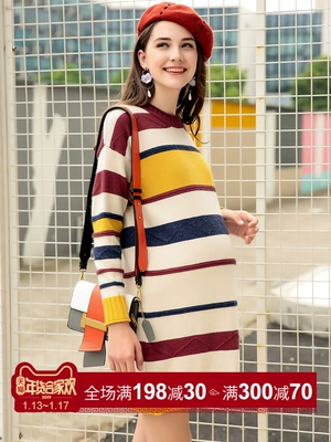 Tháng 10 nổi tiếng váy bà bầu áo len mùa thu và mùa đông thả lỏng mùa thu mùa đông ấm áp mùa đông dài đoạn đáy áo