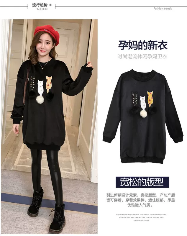 Phụ nữ mang bầu mùa thu đông phù hợp với người mẫu thời trang 2018 mới mang bầu lỏng cộng với áo nhung dày ấm áp hai dây