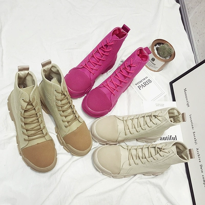Giày cao nữ 2018 mới hip hop hip-hop net đỏ giày nữ triều nhỏ giày vải trắng nhỏ thể thao và giải trí Martin ủng