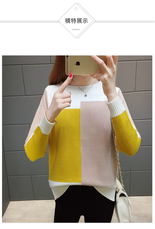 Áo len gió nữ 18 mùa thu mới Áo len Hàn Quốc tay dài màu sắc kẻ sọc lỏng thời trang áo sơ mi đáy