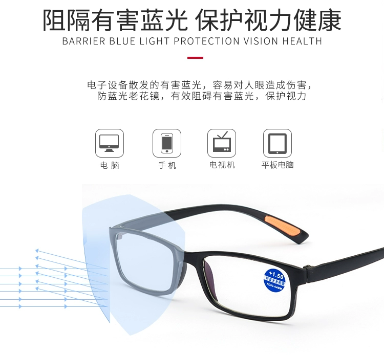Phiên bản nâng cấp của kính đọc chống xanh thời trang HD ống kính cũ siêu nhẹ TR90 Kính đọc sách chống phóng xạ cầm tay