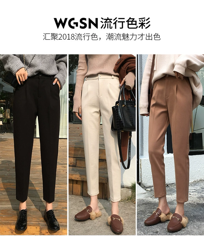 Mùa thu và mùa đông quần harem len quần nữ thẳng phù hợp với quần ống ống quần hoang dã chân lỏng quần cà rốt quần dài giản dị