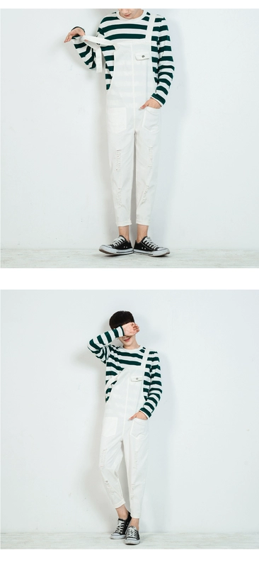 Nam 2018 mùa thu nam mới yếm giặt quần thun lỗ thông thường Quần Harlaniesies quần yếm trắng