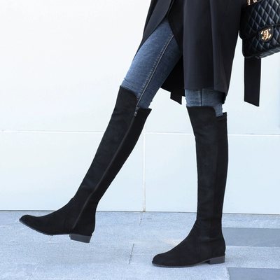 Pony tùy chỉnh trên đầu gối giày cao cổ nữ đàn hồi với dây kéo mùa đông cao