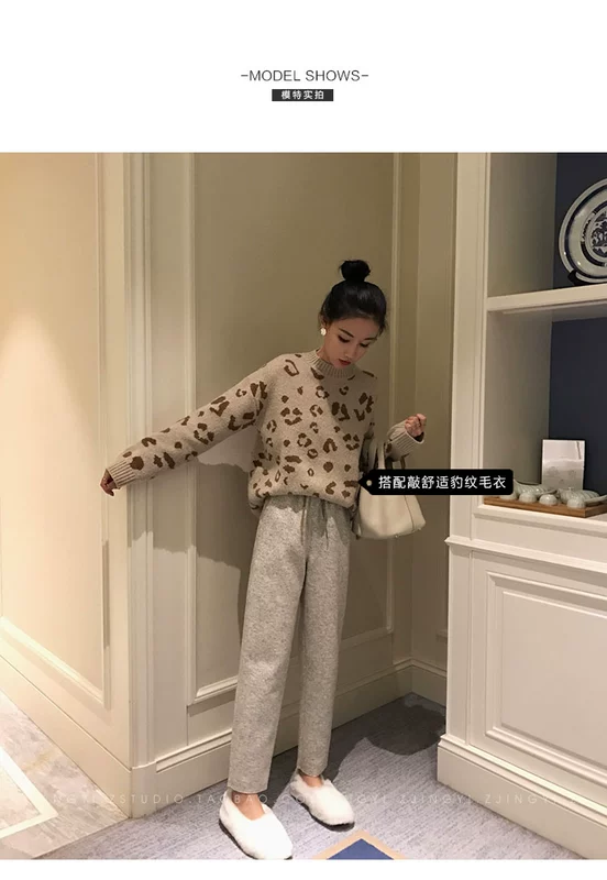 Zhang Jingyi Mùa thu và mùa đông phiên bản mới của Hàn Quốc quần len cạp cao nữ rộng rãi quần harem thường quần dài chân dài
