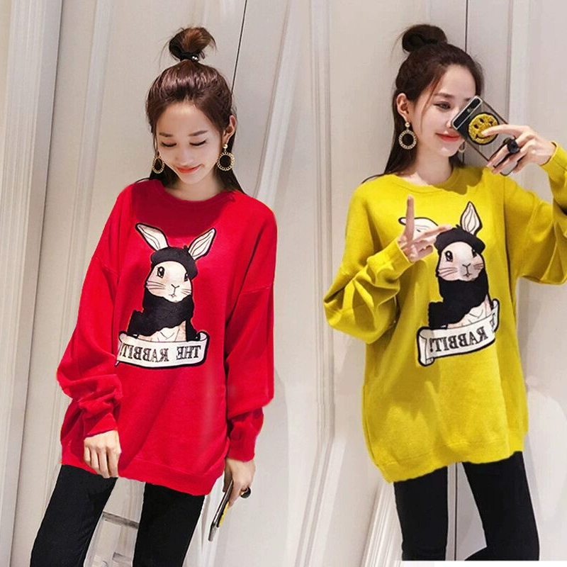 Bà bầu mặc quần áo mùa thu đông trong phần dài của áo len cộng với nhung dày rộng cỡ lớn phiên bản Hàn Quốc của áo sơ mi cổ tròn ôm cổ cho bà bầu mùa đông