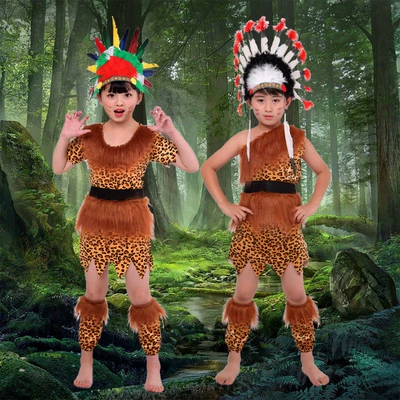 Trẻ em mới Quần áo biểu diễn trống châu Phi Quần áo trẻ em man rợ Quần áo nam và nữ trang phục thợ săn trưởng Ấn Độ