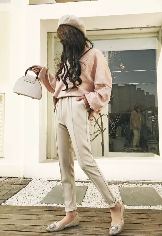 Mùa đông mới quần len eo cao kích thước lớn quần cà rốt lỏng lẻo phù hợp với quần ống khói ống quần Harlan chân quần phụ nữ