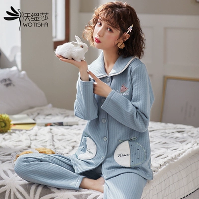 Air cotton tháng quần áo bà bầu đồ ngủ phụ nữ sau sinh mùa xuân và mùa thu cho con bú quần áo phù hợp với bà bầu mùa thu và dịch vụ nhà mùa đông - Giải trí mặc / Mum mặc