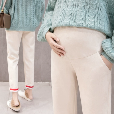 Angel M Mom ~ quần bà bầu mùa thu thời trang mới bên ngoài mặc quần legging eo cao nâng bụng quần rộng ống rộng - Phụ nữ mang thai quần / quần bụng