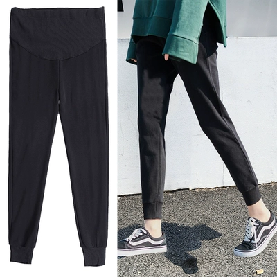 Angel M Mom ~ quần bà bầu mùa thu thời trang mới màu rắn eo cao thường mặc quần harem mặc bà bầu nâng bụng - Phụ nữ mang thai quần / quần bụng