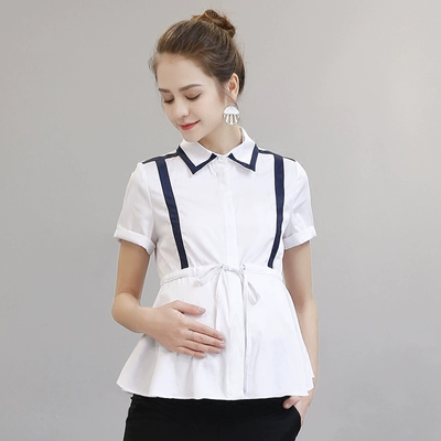 Áo bà bầu thời trang hè Hàn Quốc áo cotton ngắn tay cho bà bầu mùa hè áo trắng ngắn dụng cụ chuyên nghiệp - Áo thai sản