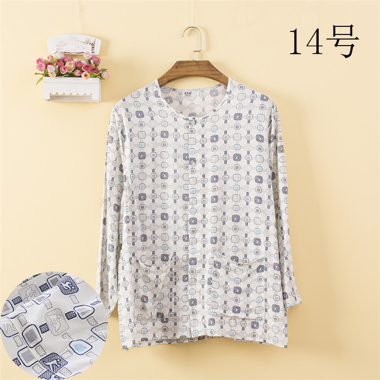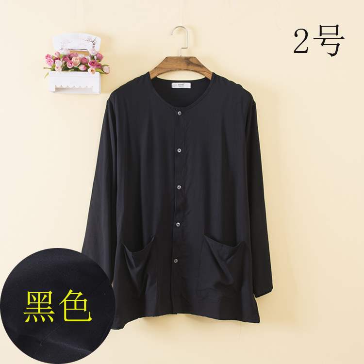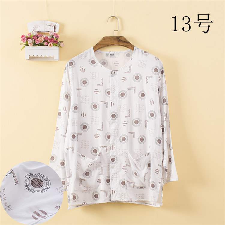 Áo dài sóng nam mới chất liệu cotton lụa dài tay áo len cổ tròn áo pyjama trung niên mặc đơn màu mỏng - Pyjama