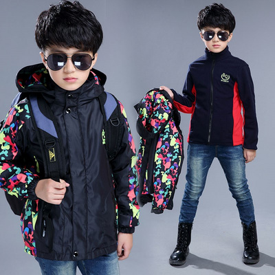 Áo khoác bé trai và áo khoác nhung có thể tháo rời Áo khoác bé gái mùa xuân và mùa thu 2018 Quần áo ngoài trời cho bé ba trong một mới - Quần áo ngoài trời cho trẻ em