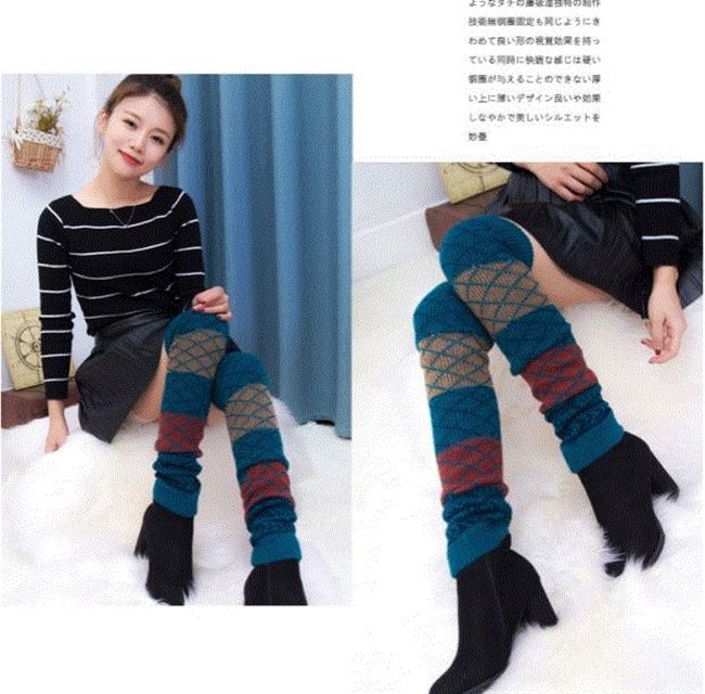 Áo len cộng với cotton nhảy đẹp đến đầu gối quần bốt cao cổ bốt vớ legging vớ vớ vớ bắp chân co giãn vớ len - Vớ mắt cá chân
