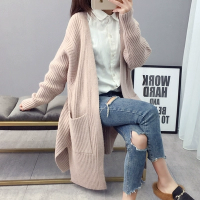Áo len nữ nữ dài mùa thu và mùa đông dài qua đầu gối 2018 mới mùa thu Hàn Quốc áo len dày - Đan Cardigan