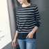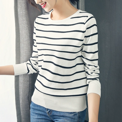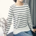 Áo len sọc trắng đen Áo len nữ áo thun rộng Hàn Quốc áo dài tay dài chạm đáy áo hoang dã đầu thu - Đan Cardigan