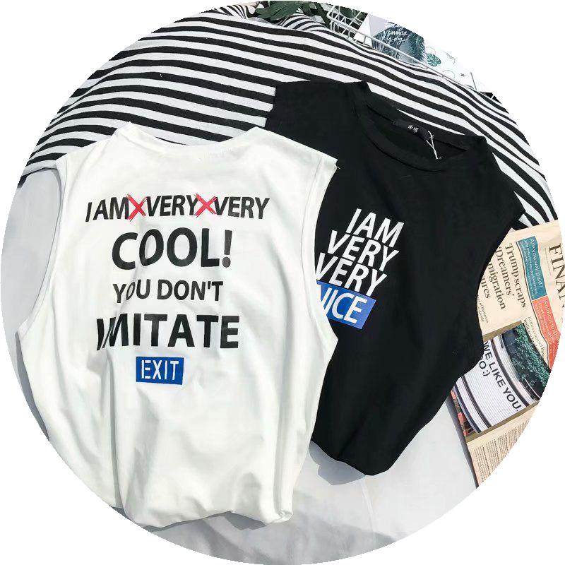 Áo ngắn tay in họa tiết màu ngắn tay không có tay áo, áo thun nam cổ tròn đẹp trai, áo nỉ, thể thao Hàn Quốc - Lót