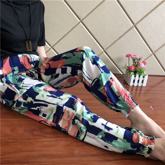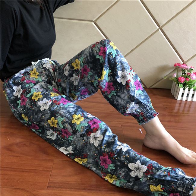 Áo ngủ cotton lụa nữ mùa hè quần lụa cotton mỏng phần mùa xuân và mùa thu kích thước lớn rộng rãi cotton nhân tạo nhà chín điểm quần - Quần tây