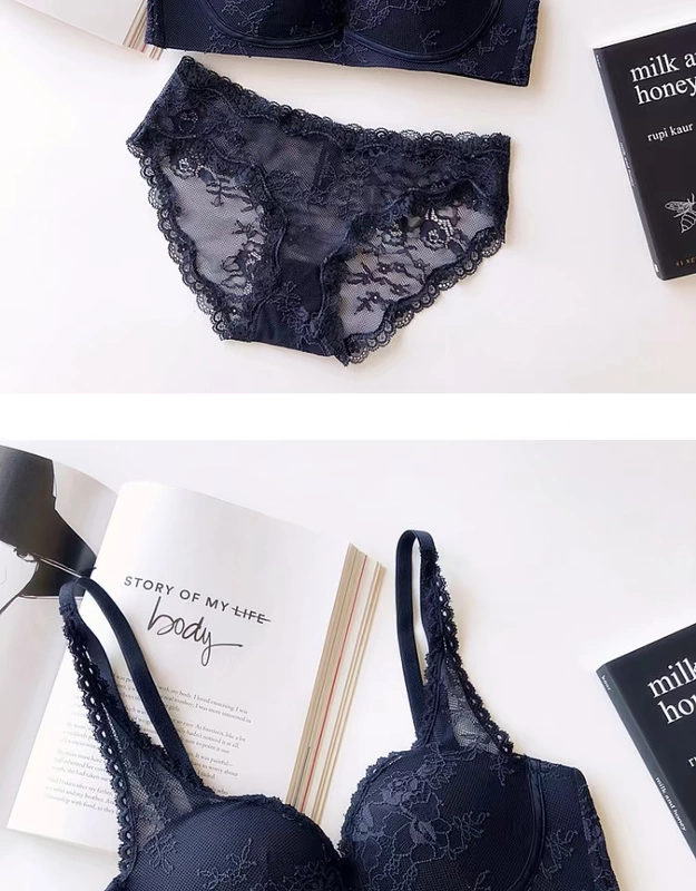 Áo ren Pháp không có vành tụ tập trên bộ sưu tập gợi cảm mỏng và dày thoải mái của áo ngực đặt áo ngực cúp ngực nhỏ đồ lót ngực nhỏ - Bộ đồ lót
