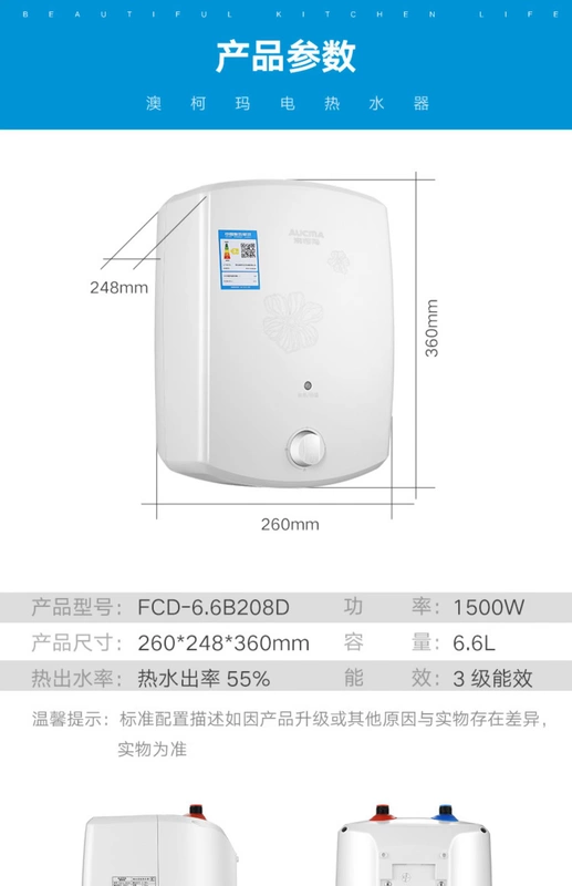 Aucma FCD-6.6B208D bếp kho báu ngay lập tức nóng hộ gia đình nhỏ máy nước nóng điện lưu trữ loại 6.6L - Máy đun nước