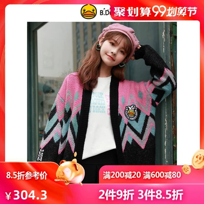 B.Duck nhỏ màu vàng vịt 2019 mùa thu mới đại học áo len retro áo len nữ áo len mỏng - Đan Cardigan