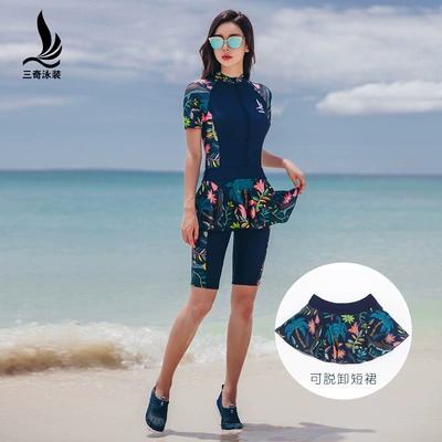 Ba áo tắm kỳ lạ nữ Xiêm váy ngực nhỏ tập hợp bảo thủ bụng mỏng bụng thể thao kích thước lớn boyshort áo tắm mùa xuân nóng - Bộ đồ bơi One Piece