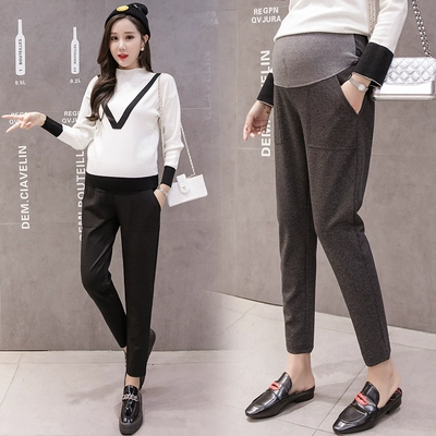 Bà bầu mặc quần dài mùa thu 2019 Bà bầu mới mặc quần harem Quần bà bầu mùa thu quần legging thường - Phụ nữ mang thai quần / quần bụng