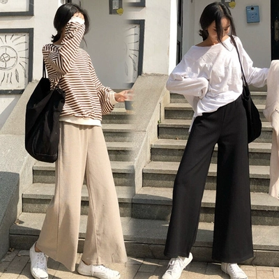 Bà bầu mặc quần dài mùa thu rộng kích thước Hồng Kông hương vị hoang dã thẳng giản dị quần cao eo rộng quần nữ - Phụ nữ mang thai quần / quần bụng