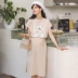 Bà bầu mùa hè cotton bà bầu váy mùa hè váy dài đầu gối váy dài thời trang áo thun váy bà bầu thủy triều - Áo thai sản