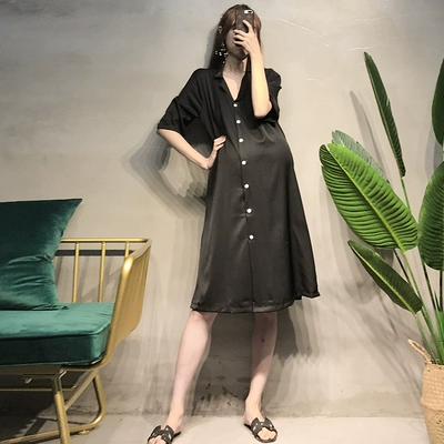 Bà bầu mùa hè đầm nhỏ phù hợp với cổ áo váy bơ xanh váy ren mùa hè khí chất chia váy cho con bú - Áo thai sản