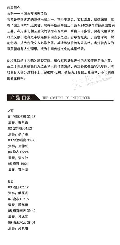 Bản gốc chính hãng Cổ đại Rhyme Trung Quốc Guqin Chuanshi Mingqu LP ghi âm vinyl ghi âm chuyên dụng ống 12 inch Pinghu - Máy hát