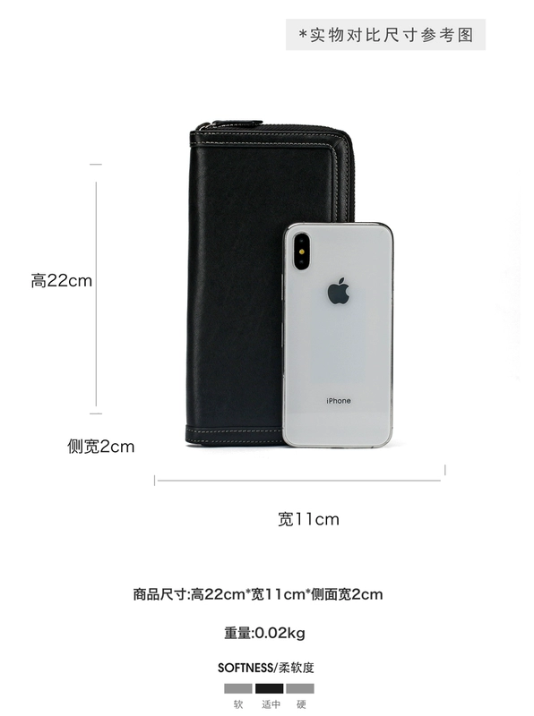 BFS ví nam da dài thanh niên sinh viên dây kéo dọc đa chức năng làm bằng tay cá tính hipster da cừu clip - Ví tiền