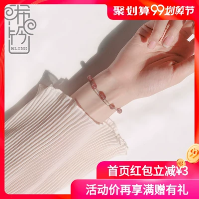 Bling muốn pha lê màu hồng dâu pha lê dâu tây nữ lừa đào sterling bạc pha lê Hàn Quốc phiên bản đơn giản của học sinh Sen bạc - Vòng đeo tay Clasp