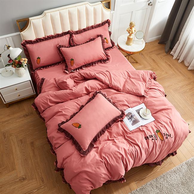 Bộ đồ lót bằng vải cotton cotton màu đỏ bao gồm bốn bộ giường cộng với váy ngủ Bộ chăn ga gối tập công chúa phong cách đơn giản - Váy Petti