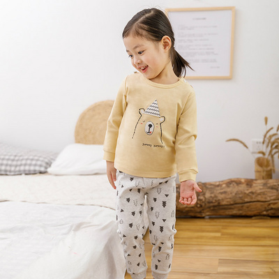Bộ đồ lót trẻ em cotton dài tay cotton bé trai bé gái mùa thu phù hợp với quần áo mùa thu đồ ngủ bé - Quần áo lót