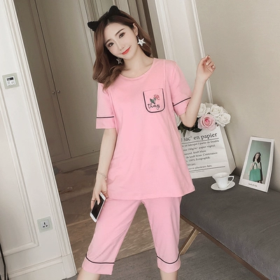 Bộ đồ ngủ cho bà bầu bằng vải bông mùa hè quần áo sau sinh mỏng cho con bú Bộ đồ ngủ mùa hè cho con bú sữa ngắn tay tại nhà - Giải trí mặc / Mum mặc