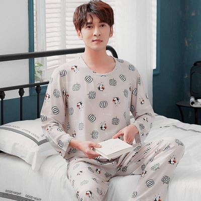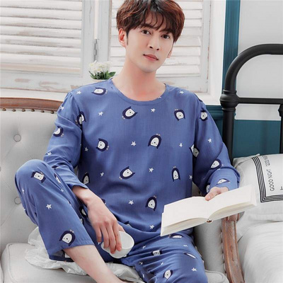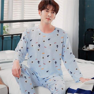 Bộ đồ ngủ mùa xuân và mùa thu thoải mái cho nam dệt cotton lụa dài tay cotton mùa hè mỏng phần rayon hai mảnh phù hợp với nhà - Pyjama