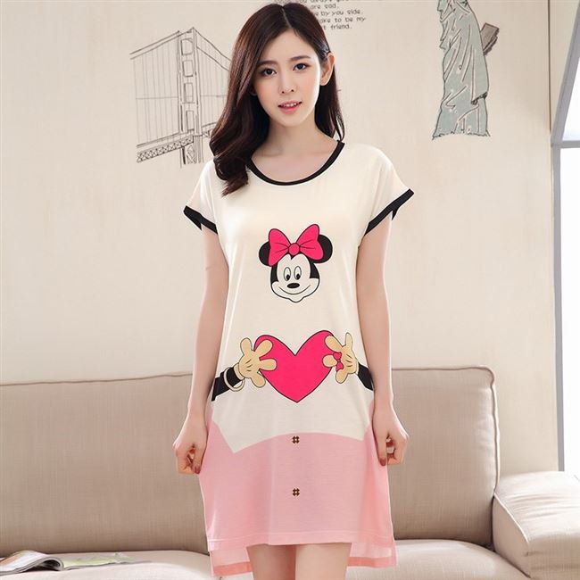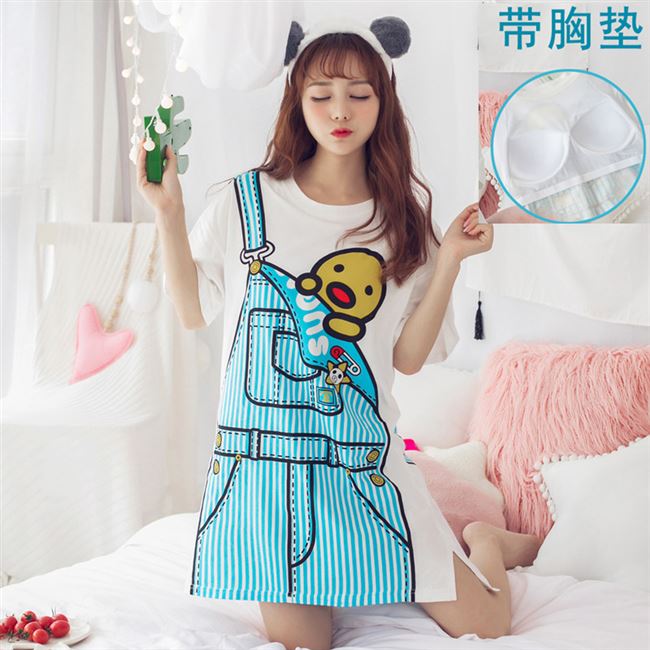 Bộ đồ ngủ nữ mùa hè ngắn tay mỏng với miếng đệm ngực phiên bản Hàn Quốc của đồ lót miễn phí váy dài một mảnh dịch vụ tại nhà - Đêm đầm