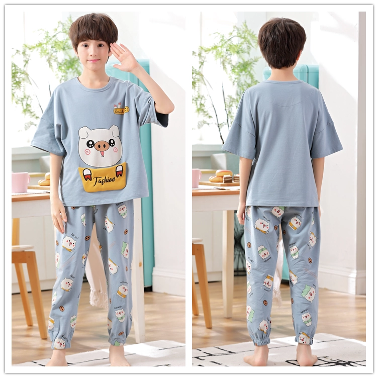 Boy con bộ đồ ngủ bé trai mùa hè ngắn tay quần cotton phần mỏng lớn Tong Chunqiu bông tracksuit phù hợp