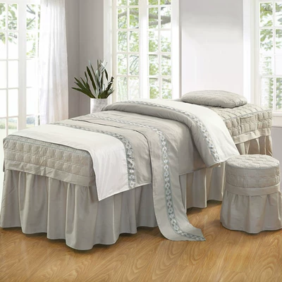 Chất liệu cotton nguyên chất màu sắc đẹp trải giường bốn bộ massage spa sản phẩm vật lý trị liệu SPA bộ giường mới tùy chỉnh - Trang bị tấm