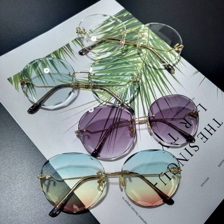 Châu Âu và Hoa Kỳ đa giác không khung cắt tỉa kính râm nữ gradient đại dương màu sắc kính râm chống UV nữ