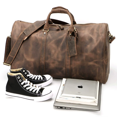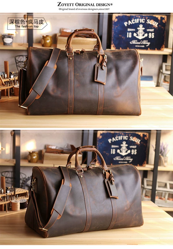 Châu Âu và Hoa Kỳ túi du lịch xách tay nam lớn công suất lớn lớn retro da nam túi da ngựa điên ở nước ngoài túi du lịch - Túi du lịch