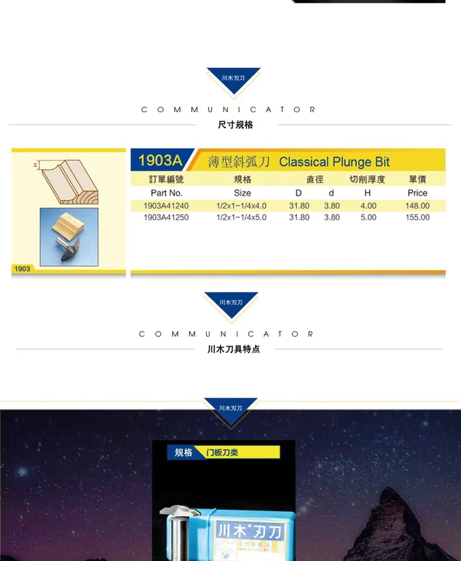 Chuanmu dao dao cửa dao loại mỏng xiên hồ quang dao 1/2 * 1/4