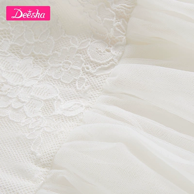 Cô gái Descisa mùa hè màu sắc mới tương phản ruy băng bé ren công chúa váy màu rắn - Váy