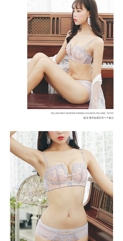 Đam mê mèo bốn góc thêu đồ lót gợi cảm tập hợp Không có bộ áo ngực bằng thép nhận được áo ngực điều chỉnh sữa - Bộ đồ lót